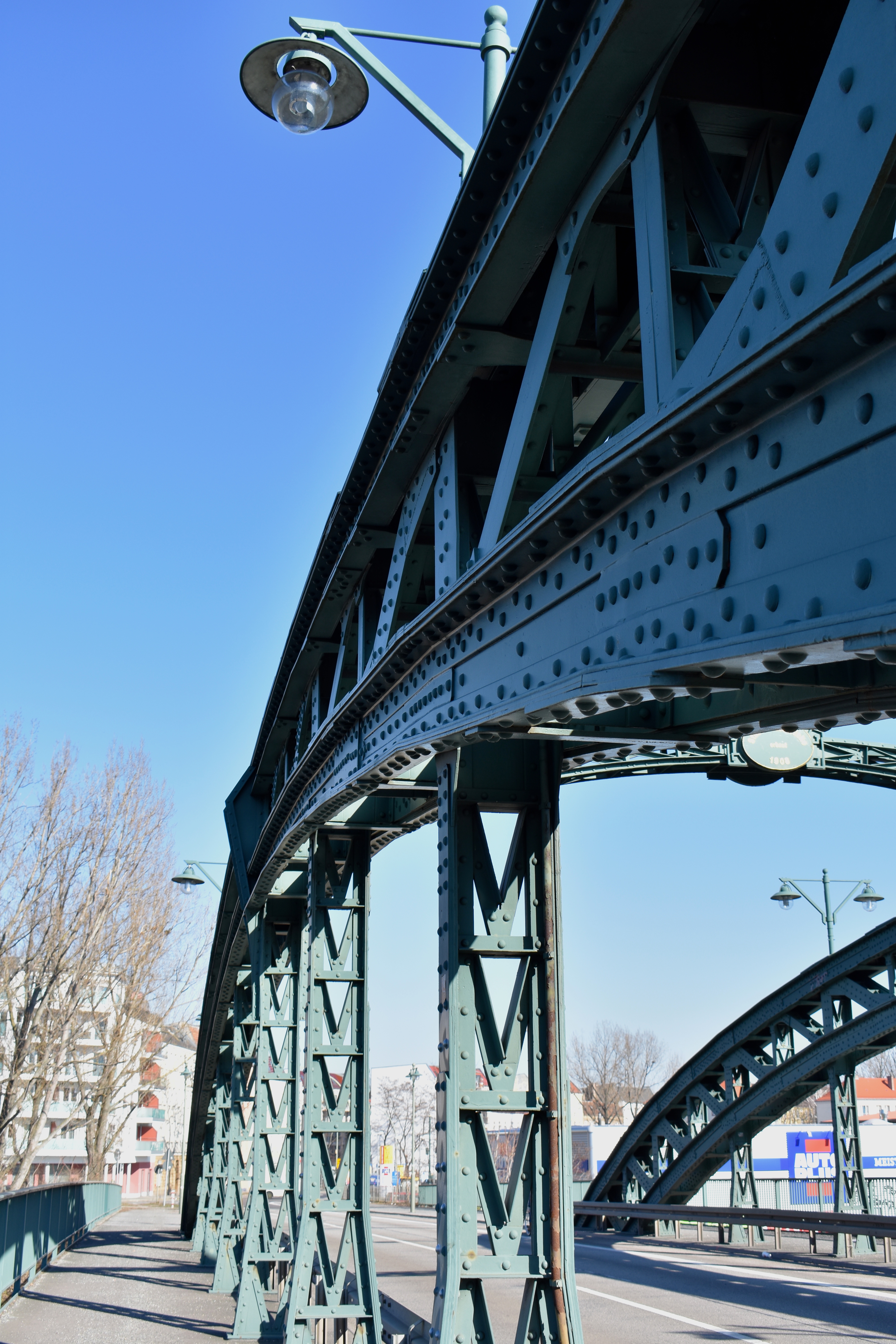 - Bauart: dreibogige Stahl- bzw. Stahlbetonbrücke